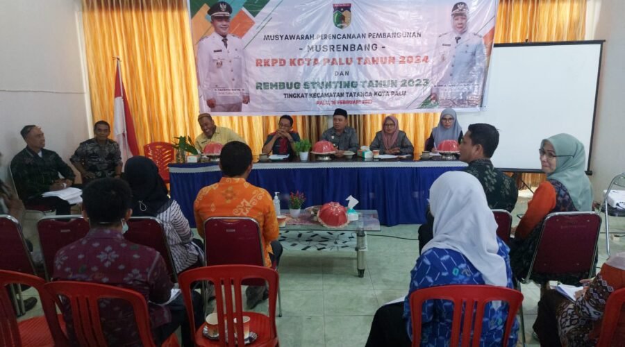Lurah se-Kecamatan Tatanga ikuti Musrenbang Tingkat Kecamatan Tatanga, Kamis (16/02). Dengan pembahasan RKPD Kota Palu Tahun 2024 dan Rembug Stunting tahun 2023, Musrenbang dipimpin langsung oleh Camat Tatanga, dihadiri oleh Sekrtaris Dinas Lingkungan Hidup Kota Palu Ibnu Muhazir, dan OPD Kecamatan dan Kelurahan sekecamatan Tatanga.