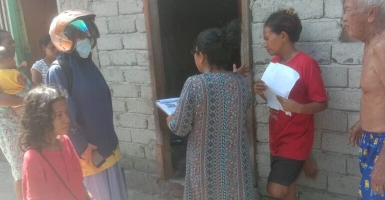 Staff Kelurahan Nunu mendampingi tim survey dari Dinas Perumahan dan Pemukiman Kota Palu dalam melakukan verifikasi bedah rumah warga Kelurahan Nunu yang berjumlah 44 unit, Rabu (12/04/2023)